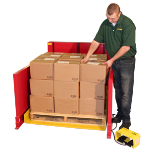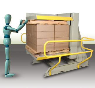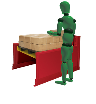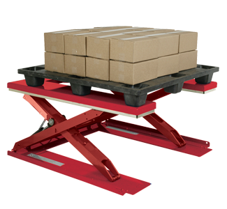 Plataforma estilo bandeja que desciende hasta la altura de piso Puede cargarse y descargarse con un transpaleta Elija entre una capacidad de 1,134 o 1,814 kg Los paneles laterales delgados permiten que los trabajadores se paren cerca de la carga; minimizando la necesidad de estirarse El sensor óptico detiene el descenso cuando se interrumpe el haz