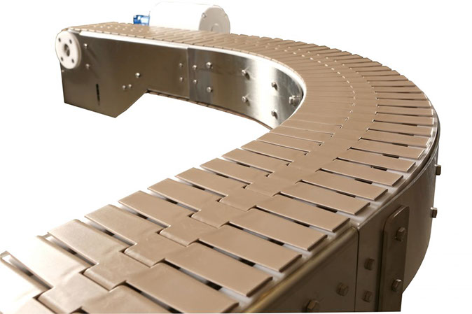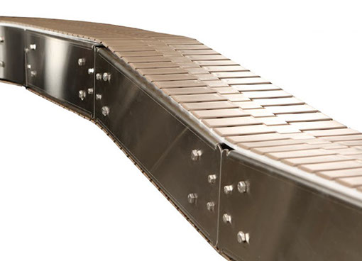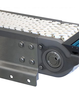 La banda de uretano sólido es accionada por la rueda dentada para un rendimiento constante y no tiene bisagras ni pasadores que albergan bacterias.