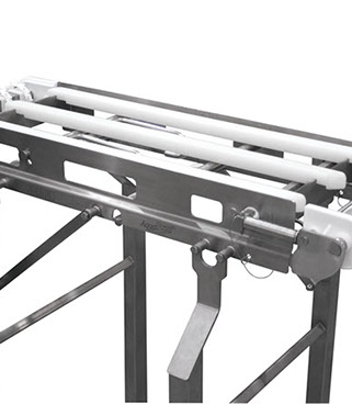 Los elevadores de banda (opcionales) levantan la banda de las tiras de desgaste al jalar simplemente una palanca externa para un acceso rápido y una limpieza efectiva.