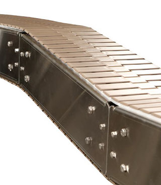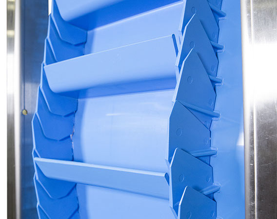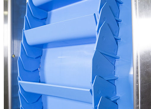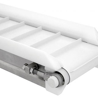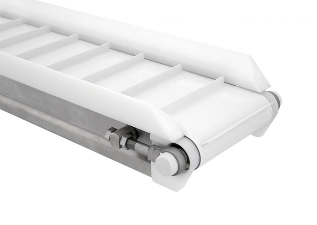 La tecnología de la banda está diseñada para inclinaciones empinadas y verticales, así como para la manipulación de materiales de gran tamaño, procesos de alimentos y, como transportador de lavado, es fácil de limpiar.