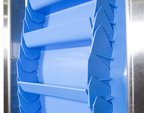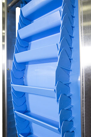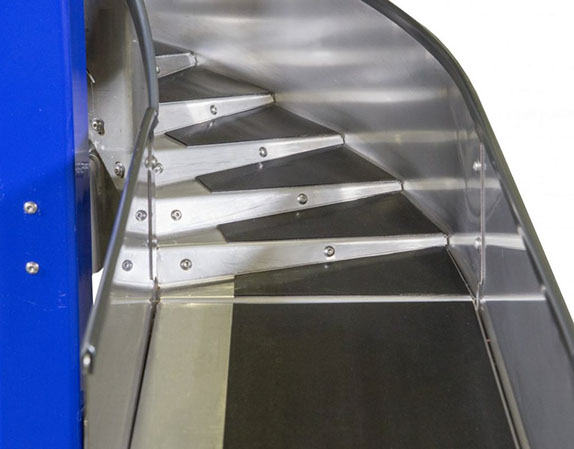 Esta tecnología de banda vertical se utiliza para elevar productos a gran tamaño como verduras y frutas, granos de maíz, granos y nueces, alimentos para mascotas, productos farmacéuticos y paquetes pequeños. Como sistema de banda transportadora sanitaria y vertical, es ideal para la industria alimentaria, farmacéutica, química y todos los entornos sanitarios ya que lleva a cabo una amplia gama de aplicaciones.