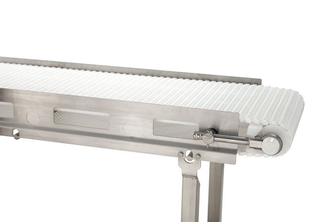 La polea con punta sin herramientas permite que el extremo del transportador se eleve fácilmente para un acceso rápido al interior del transportador para su limpieza.